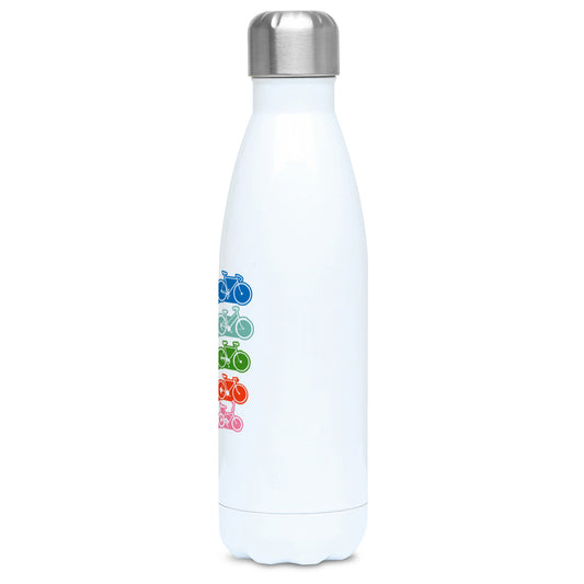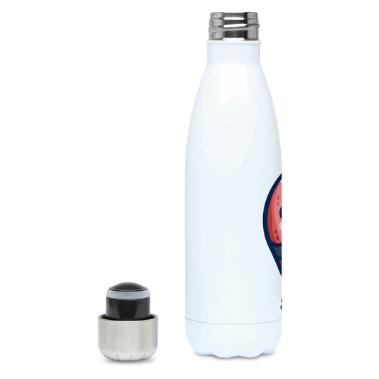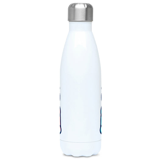 Stainless steel, double-walled bottles suitable for hot and cold drinks. The double-walled insulation helps keep hot drinks hot and cold drinks cold. 26cm tall x 7cm wide. 500ml capacity. Can be personalised.