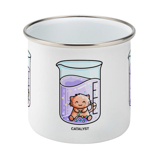 Catalyst Chemistry Pun Cute Cat Enamel Mug