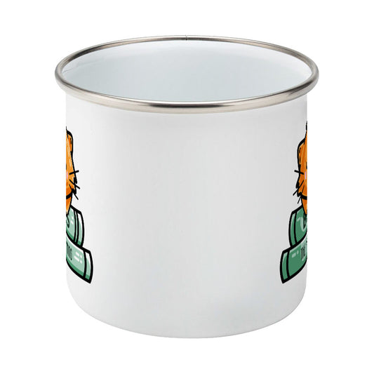 Ginger Cat With Books Cute Silver Rimmed Enamel Mug