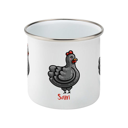 Silver rimmed enamel mugs. Many can be personalised. Get in contact if you can't find the design you're looking for on a mug, or want to personalise one which doesn't give you the option.