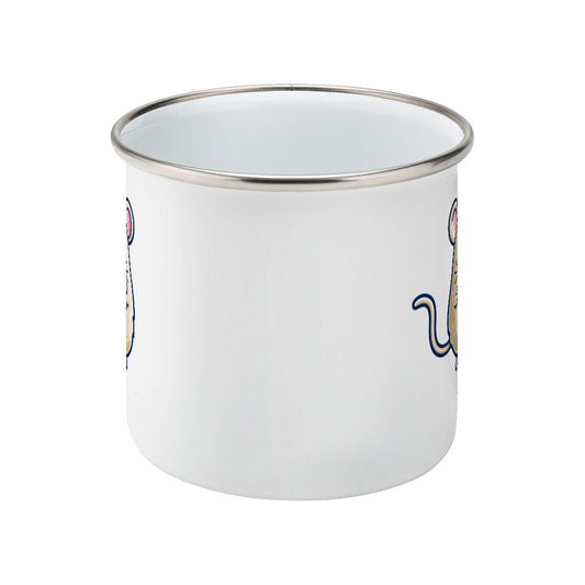 Mouse Holding Cheese Cute Personalised Silver Rimmed Enamel Mug