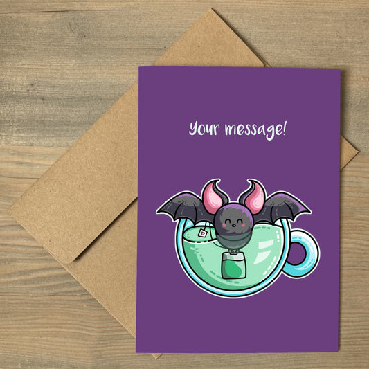 Bat Tea Pun Kawaii Cute Personalised Greeting Card