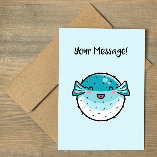 Puffer Fish Kawaii Cute Personalised Greeting Card