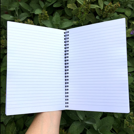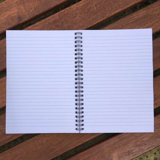 A5 size spiral notebooks with 60 pages. Your choice of either lined pages or grid graph paper pages. Delivery packaging is a cardboard envelope.