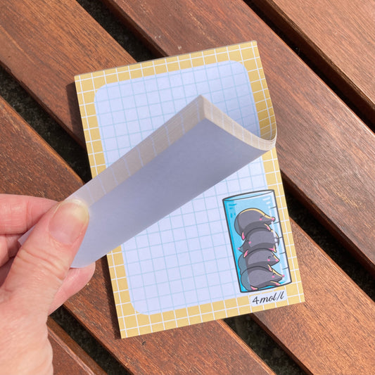 A6 notepads of graph paper featuring cute designs on every tear off sheet! Packaged in recyclable rigid cardboard envelopes for delivery.