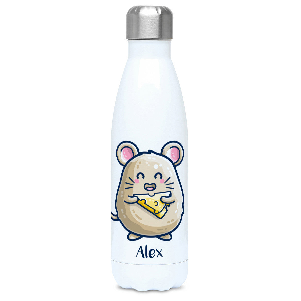 Mouse Holding Cheese Cute Personalised Drinks Bottle